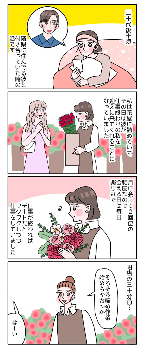 【花屋体験談】遠距離の彼氏がお店に来てサプライズしてくれた話💐① 2022年09月03日 読者さまのエピソードです!※プライバシーの保護のため、所々にフェイク入れてます。続きはコチラ👇 アプリでフォローするとブログの更新通知が届きます!↓【フォローの仕方】①ライブドアブログのアプリをダウンロード②アプリ内で「花」と検索🔍③「キチジローの花のおブログ」をフォローこれでOKです🌹✨ OFUSEで応援を送る < 前の記事次の記事 > コメント コメントフォーム 名前 コメント 記事の評価 リセット リセット 顔 星 情報を記憶 コメントを投稿する