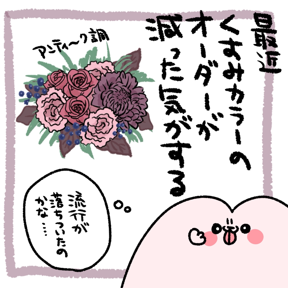 くすみカラーの花が人気のイメージだったんだけど、